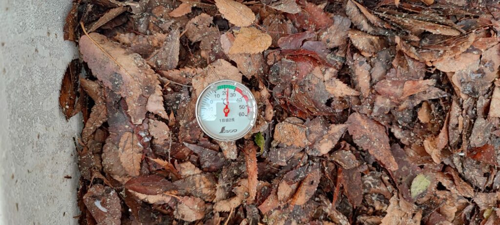 通常、発酵熱をガンガン出すには、ある程度の「大きさ(堆積量)」が必要では?中心部の熱を逃さないための「厚み」が必要だからと推測。