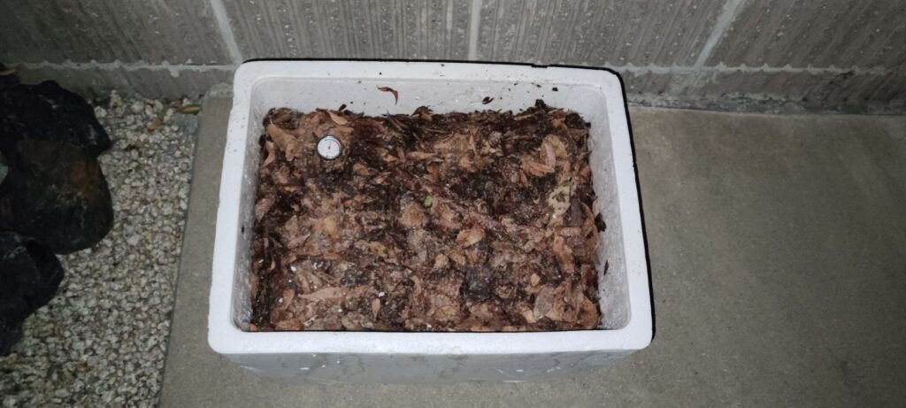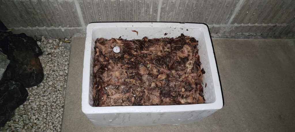 その中で、外気より+15℃も高い状態をキープできている。これは間違いなく、箱の中で「発酵」が始まった証拠では?