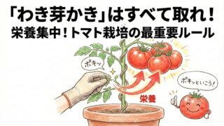 雨上がりにトマトがパックリ割れる「実割れ」の原因は水の吸いすぎ!100均グッズでできる「簡易雨よけ」や、割れる前に収穫して室内で赤くする「追熟」テクニックを解説。割れてしまった実は食べられる?判断基準と救済レシピも必見です。