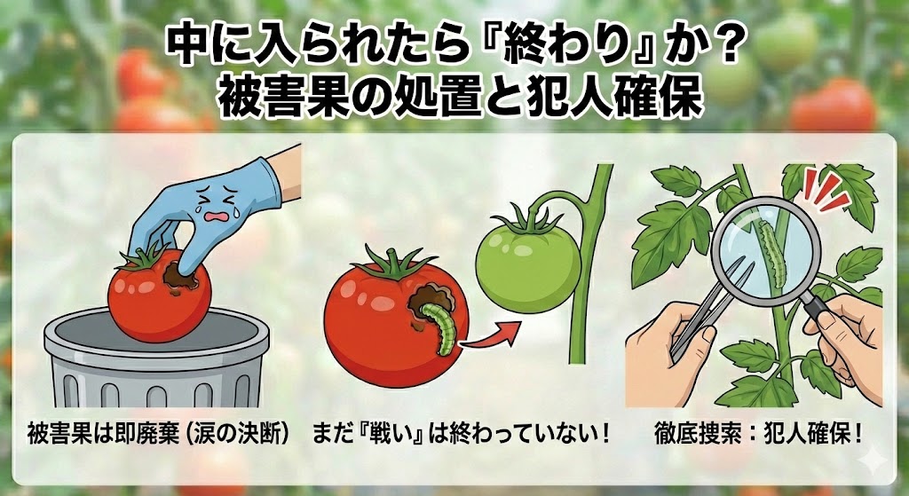 ここで多くの人が犯す最大の間違いがあります。 それは、「穴の開いたトマトを捨てて、安心して部屋に戻ってしまうこと」です。