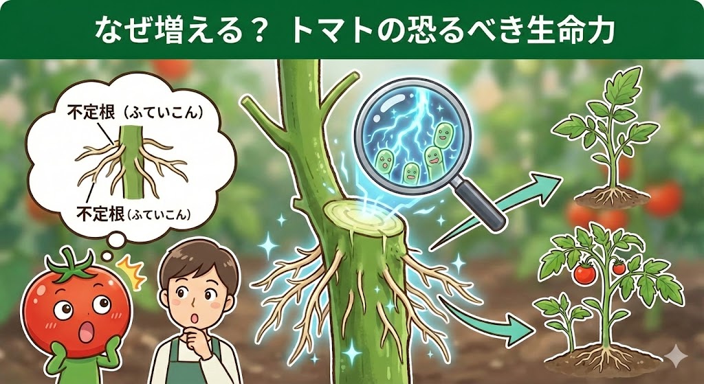 人間や動物であれば、切り落とした腕から「もう一人の自分」が生えてくるなんてことはあり得ません。 しかし、トマトはそれを平然とやってのけます。
