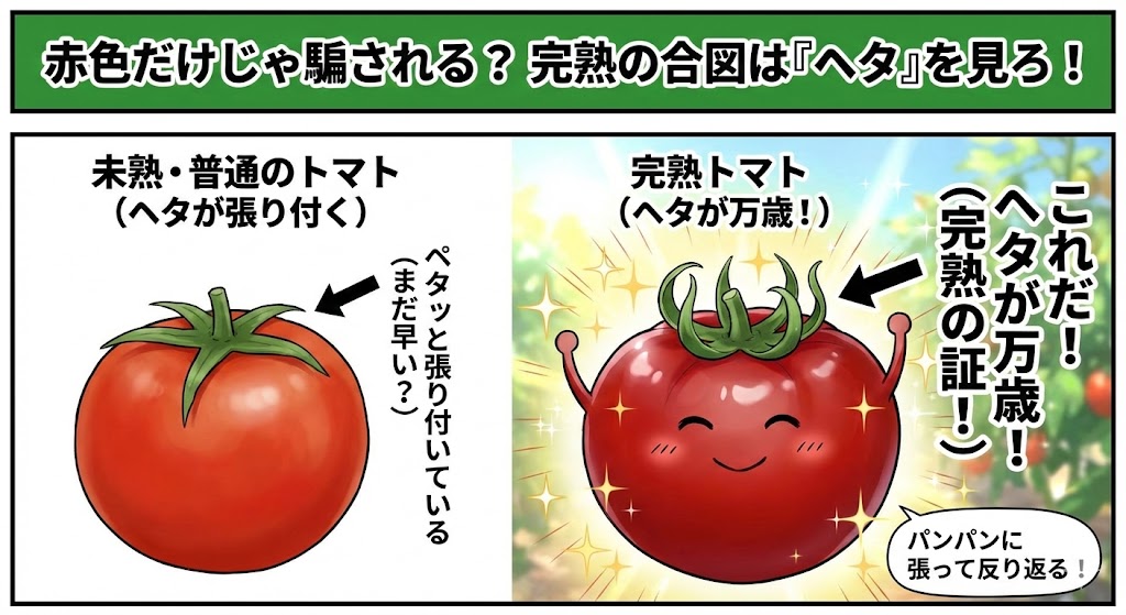 赤色だけじゃ騙される? 完熟の合図は「ヘタ」を見ろ!