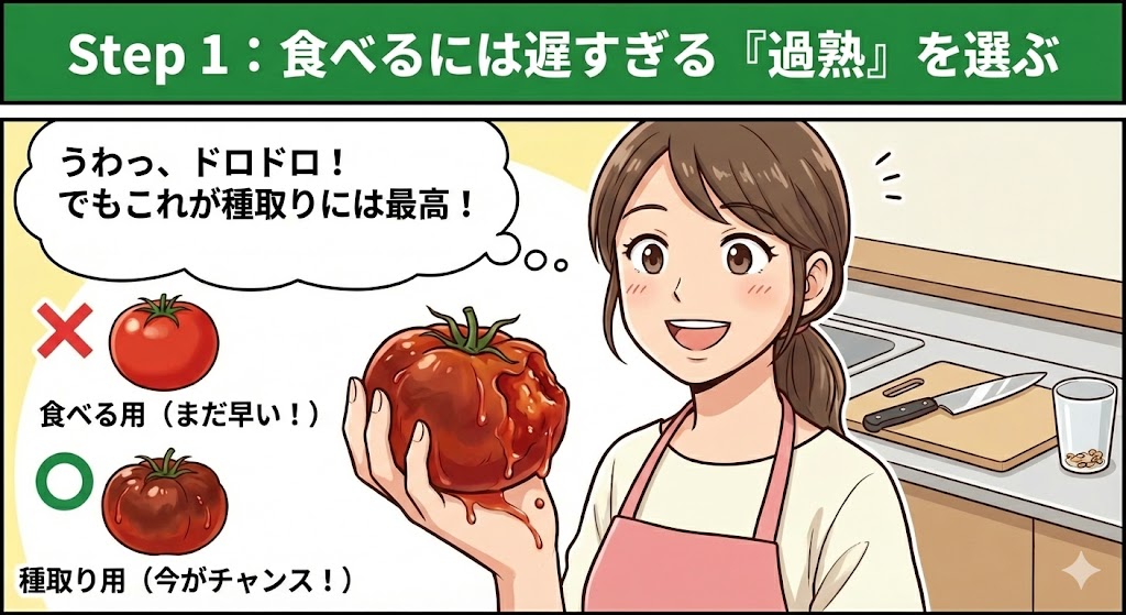 ちょっと待ってください。 その完熟トマトの中には、来年の春へとつながる「命のカプセル」が眠っています。