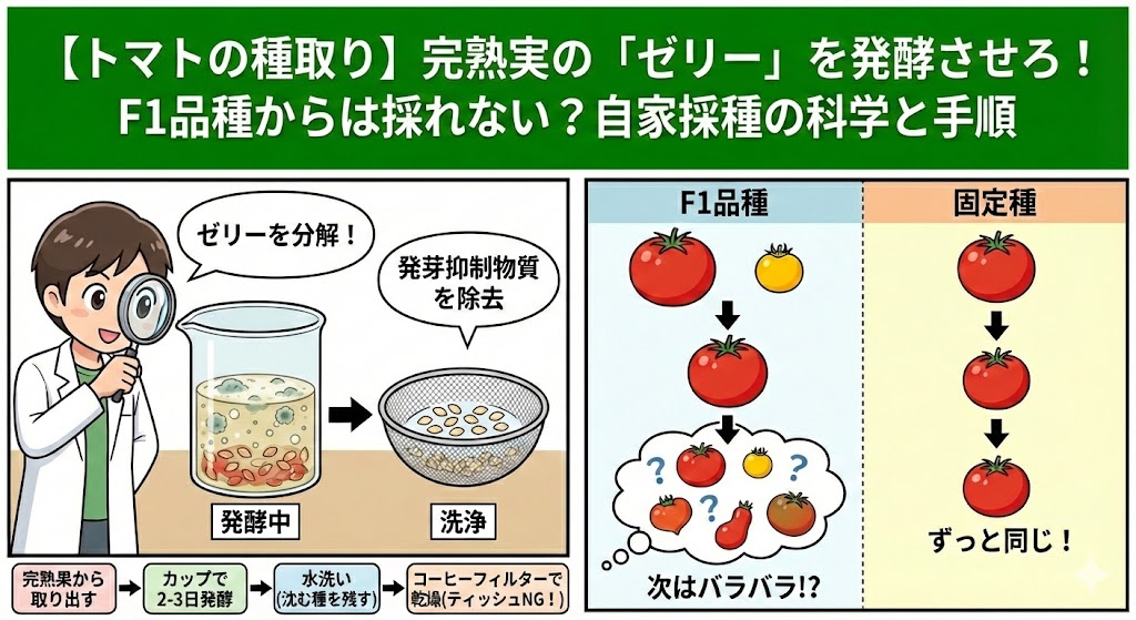 【トマトの種取り】完熟実の「ゼリー」を発酵させろ!F1品種からは採れない?自家採種の科学と手順